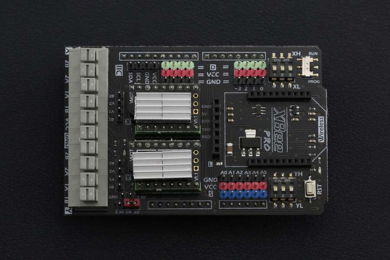 Do you want to do some projects with stepper motors such as a drafting instrument, a 3D printer, an auto curtain……? As we all know, regular stepper motors are hard to drive, but with this stepper motor shield, you can easily drive 2 stepper motors via just 6 digital I/O pins. This board is compatible with the Arduino UNO R3. This shield directly supports Xbee and Xbee form factor Wi-Fi, Bluetooth and RF modules and is easy to connect cables via screwless PC terminals. Each stepper motor has a code switch for adjusting driving modes to obtain different rotational speeds. Interfaces of the board include extension 6 channel Analog I/O, 8 channel Digital I/O & I2C.
